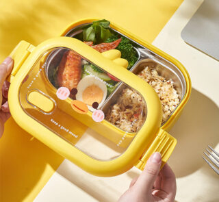 Caja de almuerzo dividida, caja de almuerzo de acero inoxidable sellada de una sola capa