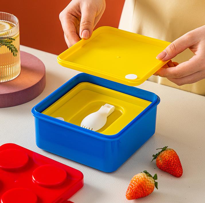 Bloques de construcción creativos, loncheras cuadradas de doble capa y bicolor1500ML