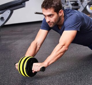 Artefacto de pérdida de peso de la rueda abdominal masculina y femenina con la rueda abdominal enrollada