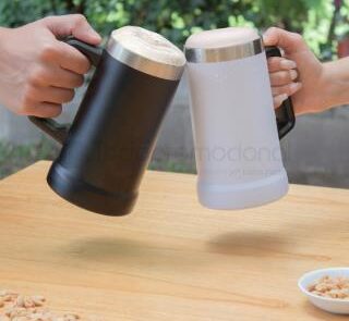 24oz vacío de acero inoxidable con mango de cerveza de gran capacidad, vaso de agua de vacío de doble capa para aislamiento térmico y frío