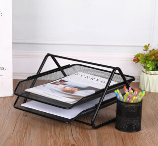Estante de archivos metálicos de extracción de doble capa estante de carpetas de escritorio estante de carpetas de almacenamiento de estanterías