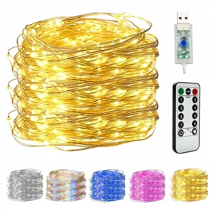 12 metros de tira con 100 luces navideñas multicolor, fácil de usar, ideal para decoración, iluminación multicolor. Bonita tira de luces con control remoto incluido. Buena iluminación.