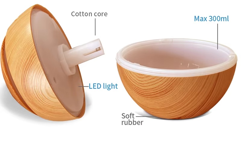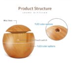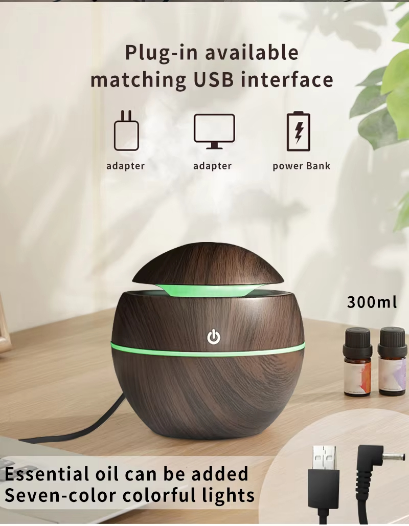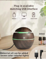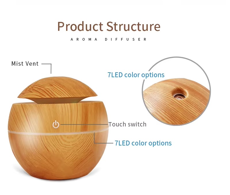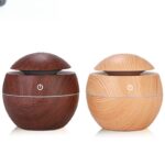 Humidificador de aire ultrasónico de 130ml, difusor de aromaterapia USB con diseño de grano de madera, luz nocturna LED, difusor de aceites esenciales eléctrico para uso doméstico