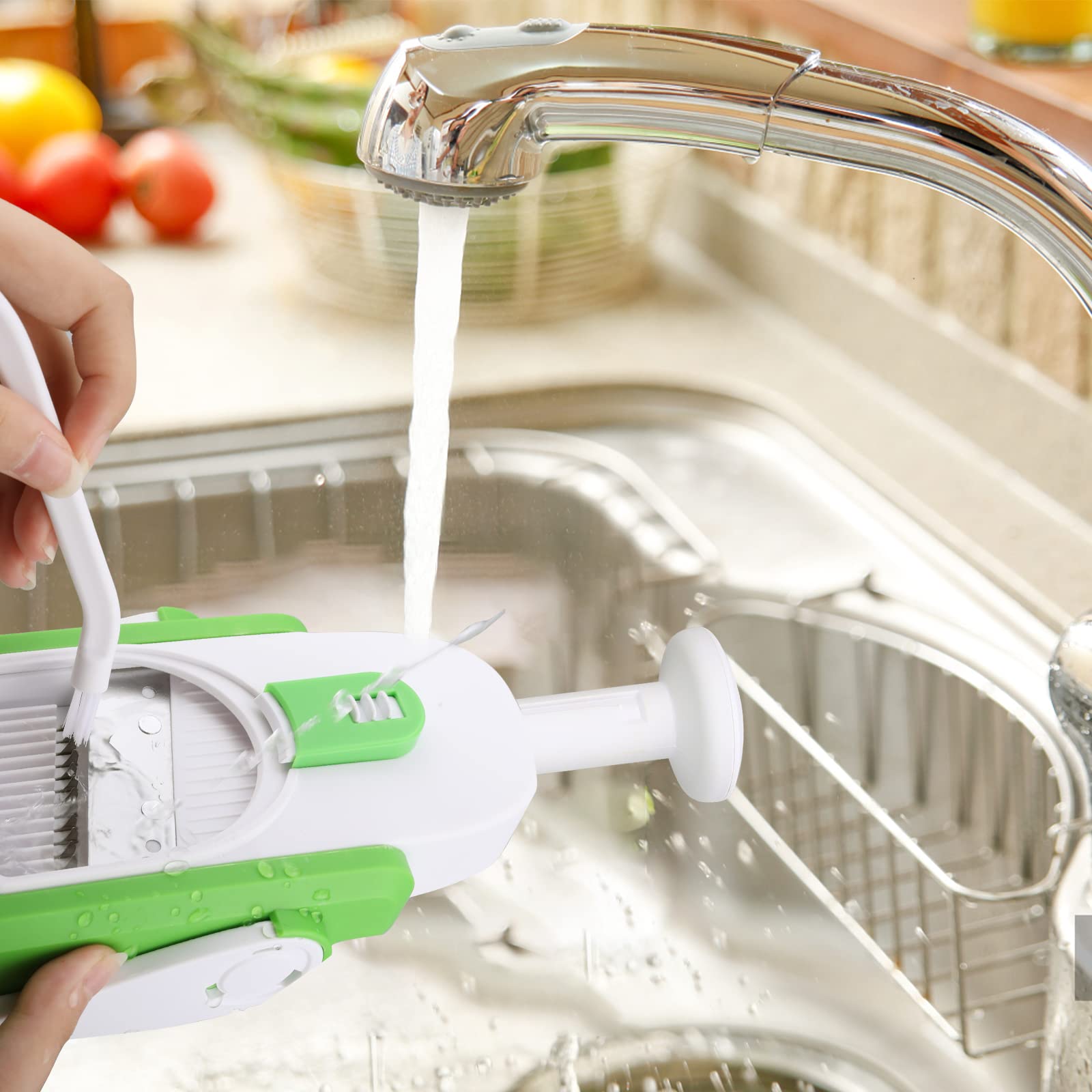 Gracias a su diseño compacto y desmontable, este cortador es increíblemente fácil de limpiar. Las piezas pueden separarse de manera segura y rápida, lo que permite enjuagarlas bajo el grifo. Incluye un cepillo especial para eliminar residuos de manera eficiente sin exponerte al contacto directo con las cuchillas.