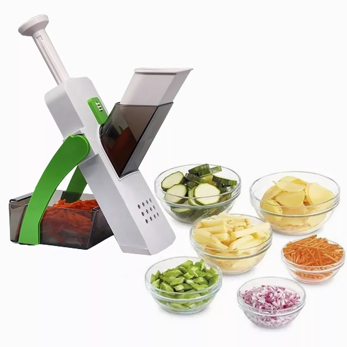 El cortador de verduras multifuncional es la herramienta ideal para transformar tu experiencia en la cocina, haciendo más sencillo y rápido el proceso de cortar, rebanar y picar tus ingredientes favoritos. Este innovador dispositivo combina funcionalidad y diseño para ofrecerte precisión y seguridad en cada uso, logrando cortes perfectos en segundos.