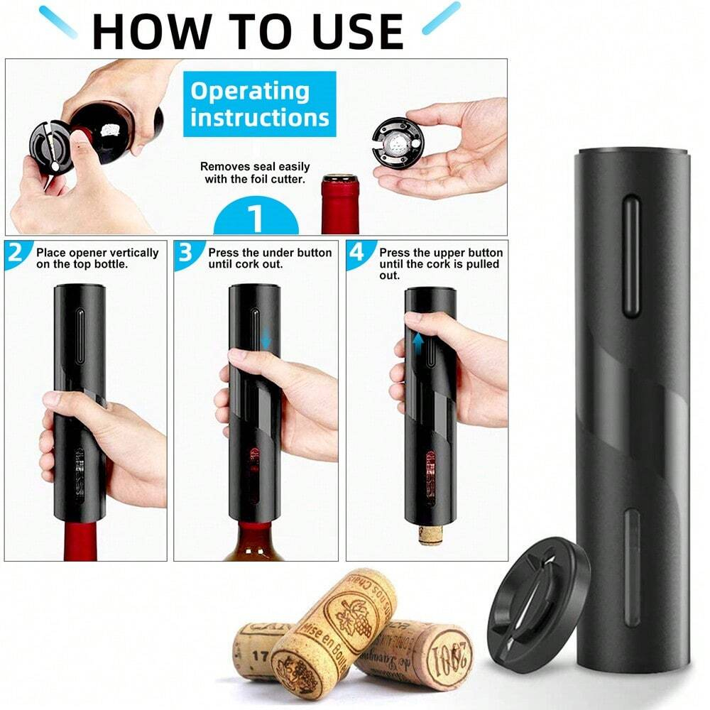Gracias a su tecnología avanzada, este sacacorchos eléctrico retira el corcho de cualquier botella de vino estándar en solo unos segundos, sin esfuerzo y sin riesgo de dañar el corcho o el vino.
