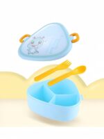 Lonchera triangular para niños con diseño de dragón de dibujos animados, compartimentos divididos, incluye cuchara y tenedor, resistente al microondas, ideal para niños en la escuela o la guardería, hecha de material seguro, disponible en azul, rosa y amarillo pastel