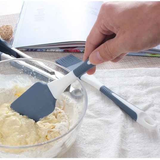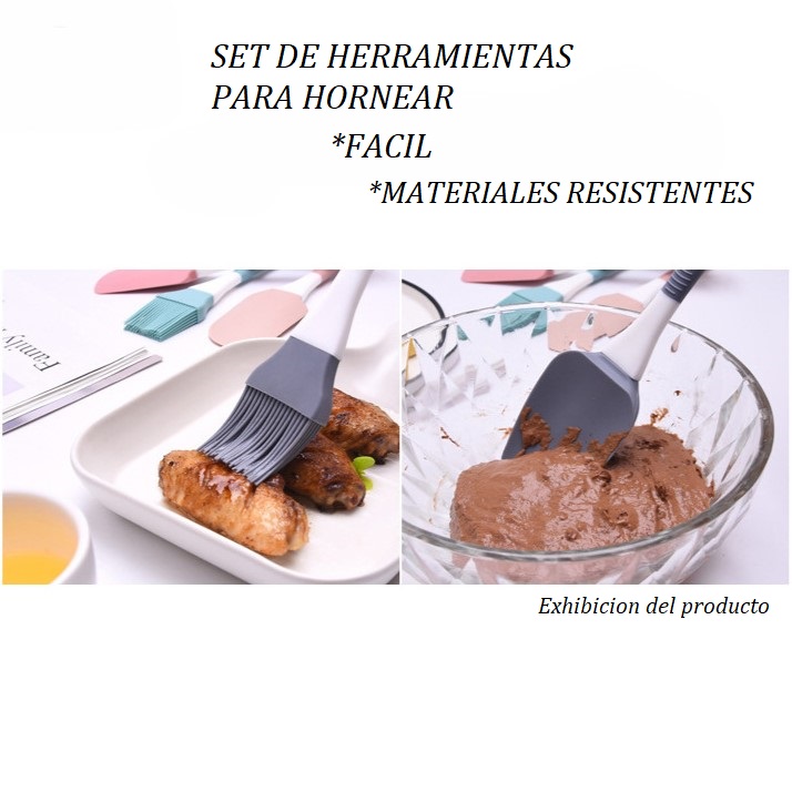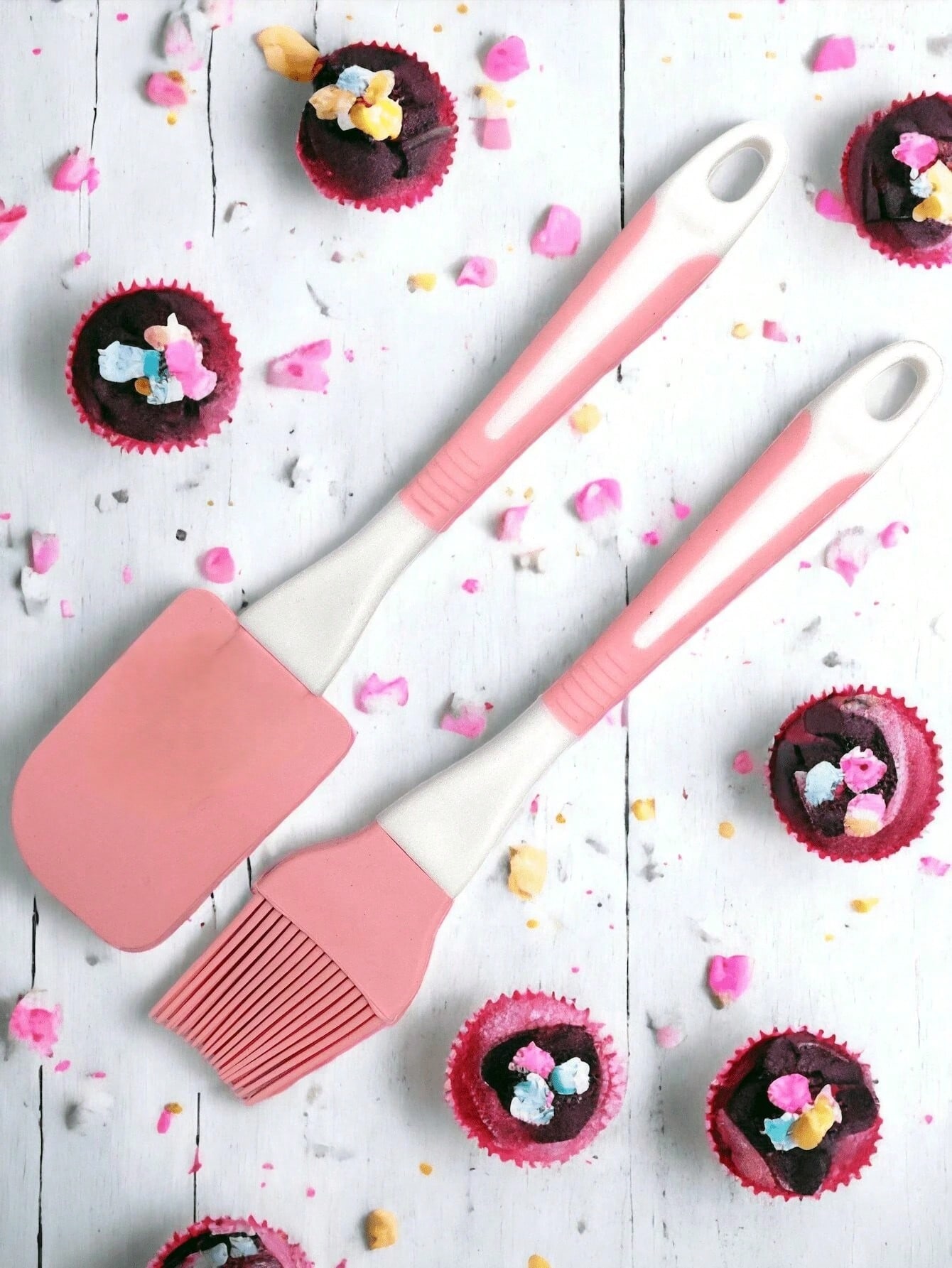 Juego lindo de cepillo de cocina y espátula en dos tonos diferentes. Cepillo de cocina y espátula en rosa y gris. Material de silicona resistente al calor. Súper práctico para cocinar y hornear.