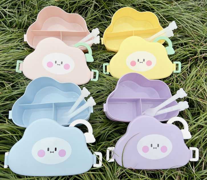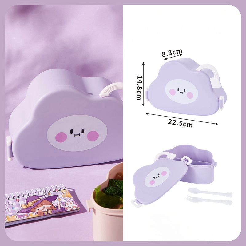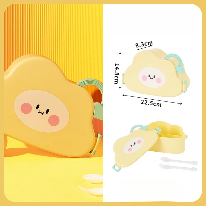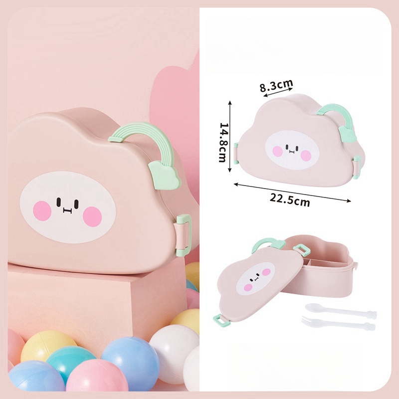 Fiambrera con diseño de nube Kawaii, fiambrera portátil con compartimentos internos y utensilios incluidos, ideal para niños y adultos, hecha de material seguro y resistente, tapa decorativa con cara sonriente, cierre hermético con clips laterales y asa superior
