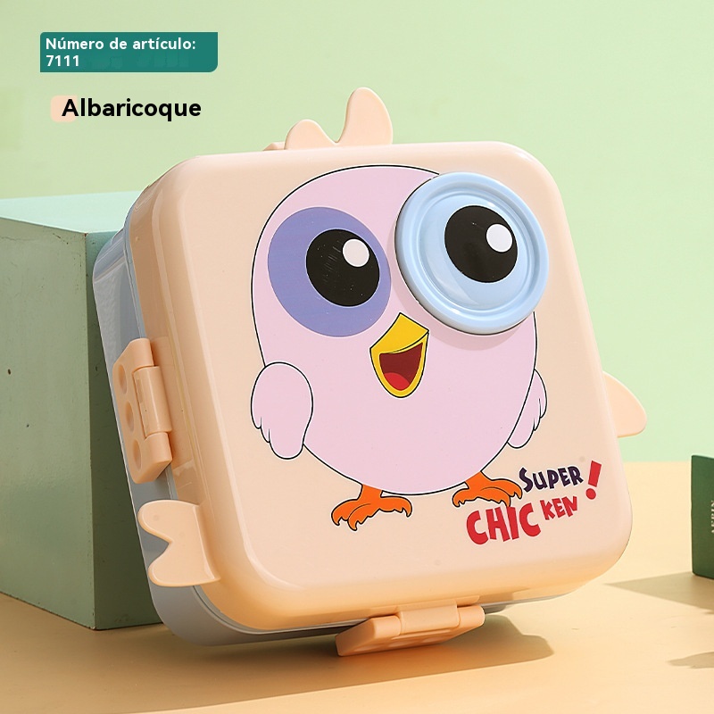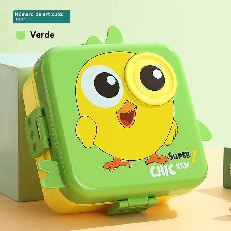 Comedor estudiantil comida de acero inoxidable dividida en loncheras sin sabor, almuerzo de dibujos animados con doble capa de anillo de Goma sellado independiente 。1 pieza Caja de almuerzo de plástico con compartimentos sellados y microondas, con diseño de gato, caja de almuerzo cuadrada, ligera y con diseño de pollo, nuevo estilo