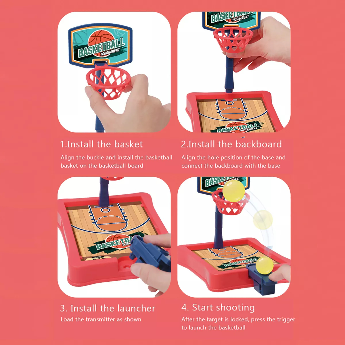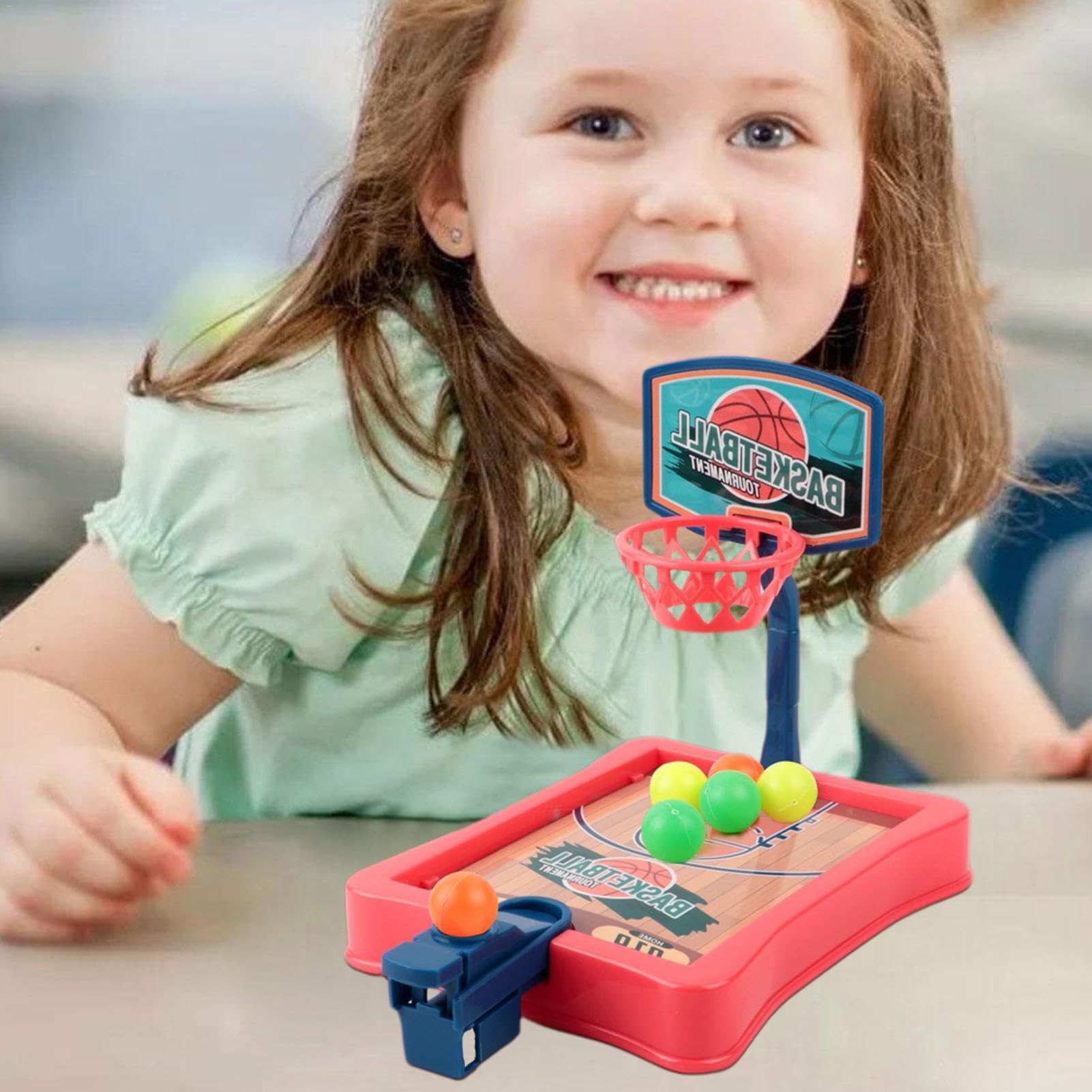Increible y muy divertido juego baloncesto en miniatura. Juego de basketball de mesa con tablero disponible en dos diferentes colores. Tablero disponible en color rojo y azul. Diviertete lazando la bola y anotando en la canasta