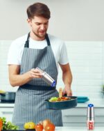 Gracias a su innovadora tecnología de gravedad, estos molinos eliminan la necesidad de botones o palancas manuales. Simplemente inclina el molino hacia abajo y automáticamente comenzará a moler tus especias favoritas, como sal del Himalaya, pimienta negra o cualquier mezcla de especias. Al colocarlo nuevamente en posición vertical, el molino se detendrá de manera automática. Este diseño intuitivo permite una operación con una sola mano, ideal para cocinar mientras sostienes otros utensilios.
