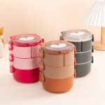 Cuenta con dos o tres niveles apilables, permitiendo separar diferentes tipos de alimentos, como arroz, ensaladas, frutas o sopas, sin que se mezclen los sabores.