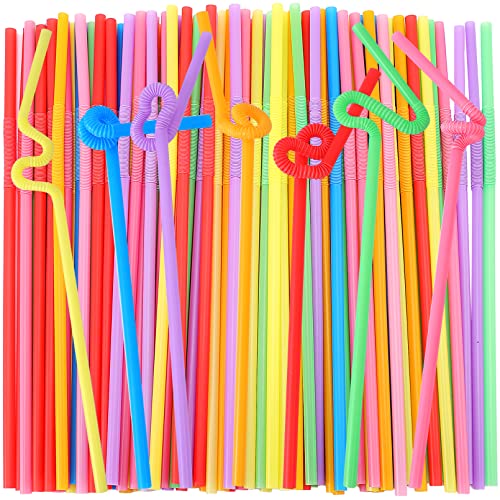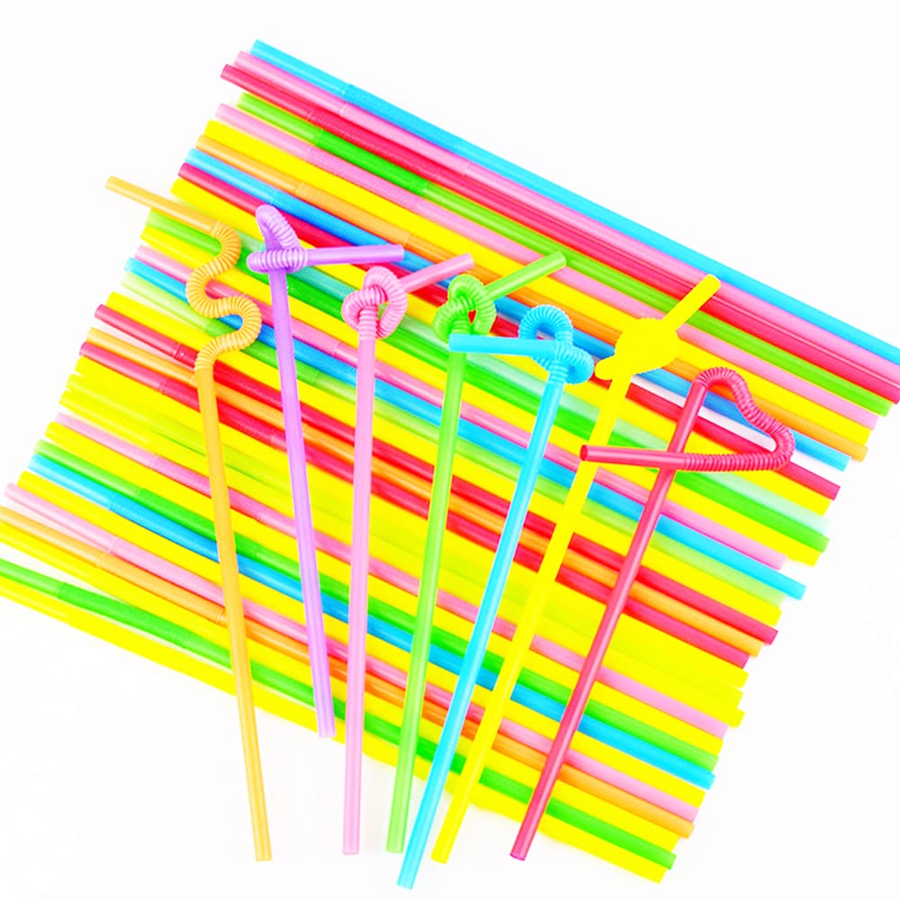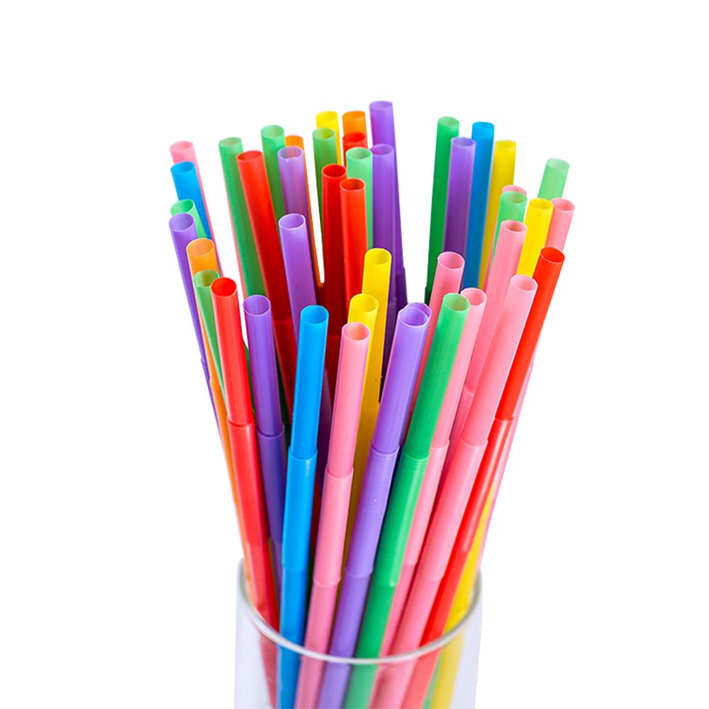 100 popotes de plástico multicolores con diseño flexible, distribuidos en colores brillantes y variados.