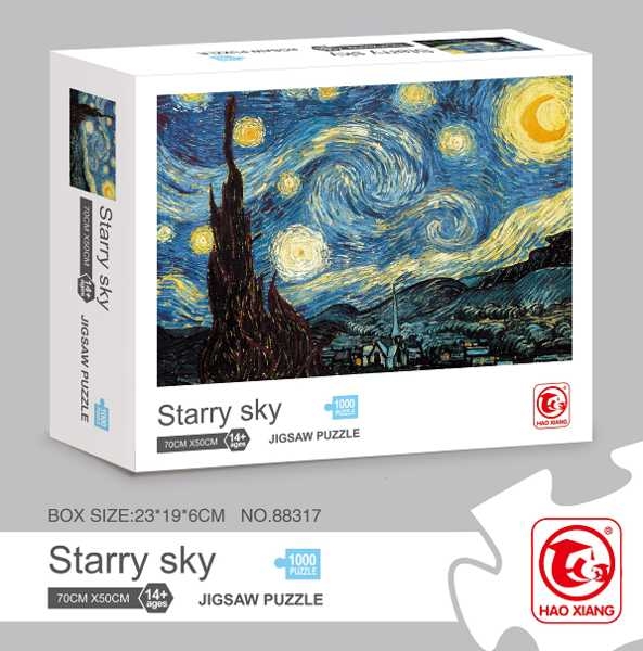 Rompecabezas de 1000 piezas para adultos y niños, pintura al óleo de La Noche Estrellada, juego de desafío para decoración de pared del hogar