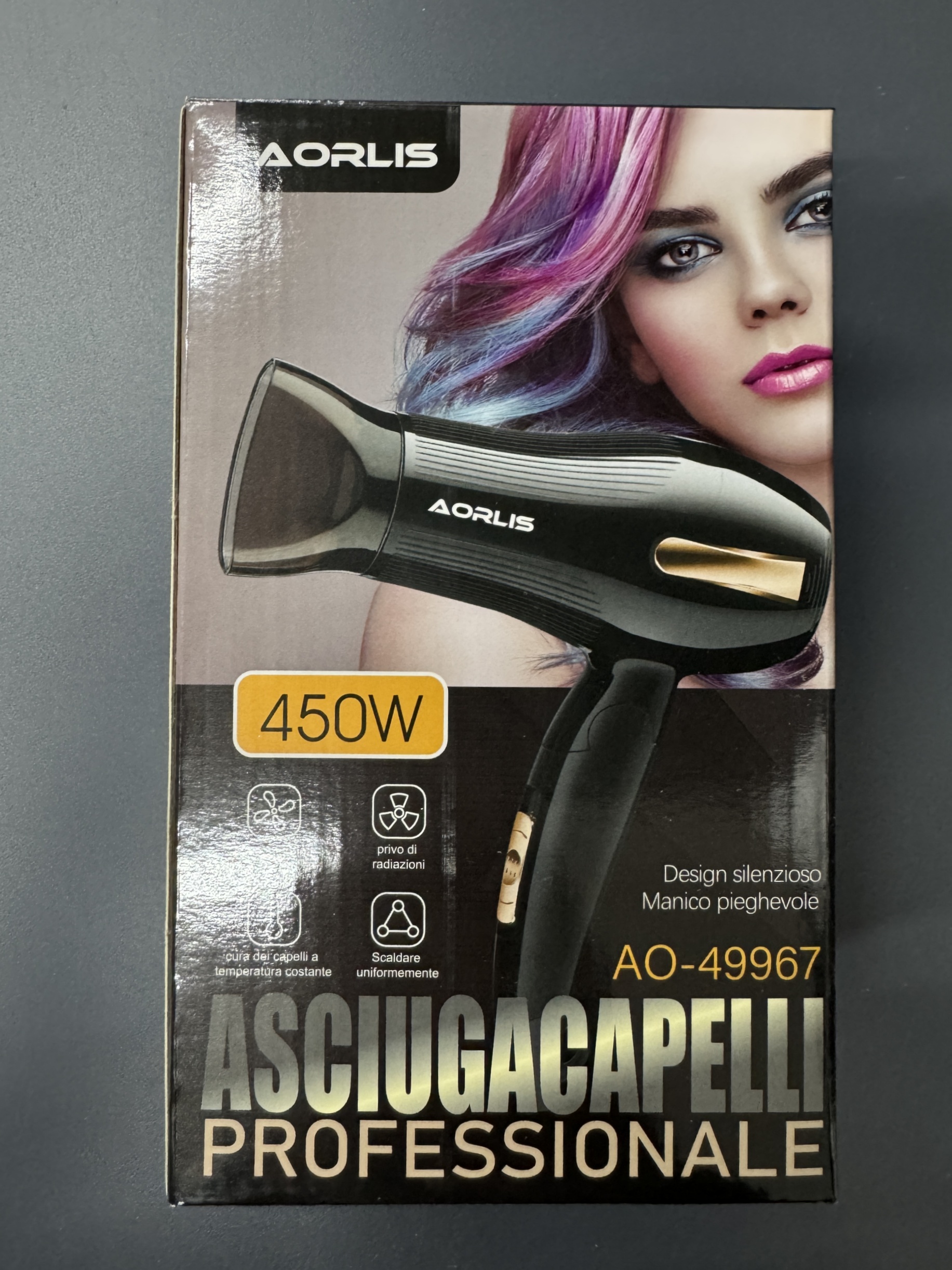 Secador de pelo compacto con mango plegable y tecnología para un cabello talla grande liso y brillante, 3 ajustes, 2 velocidades, 450W