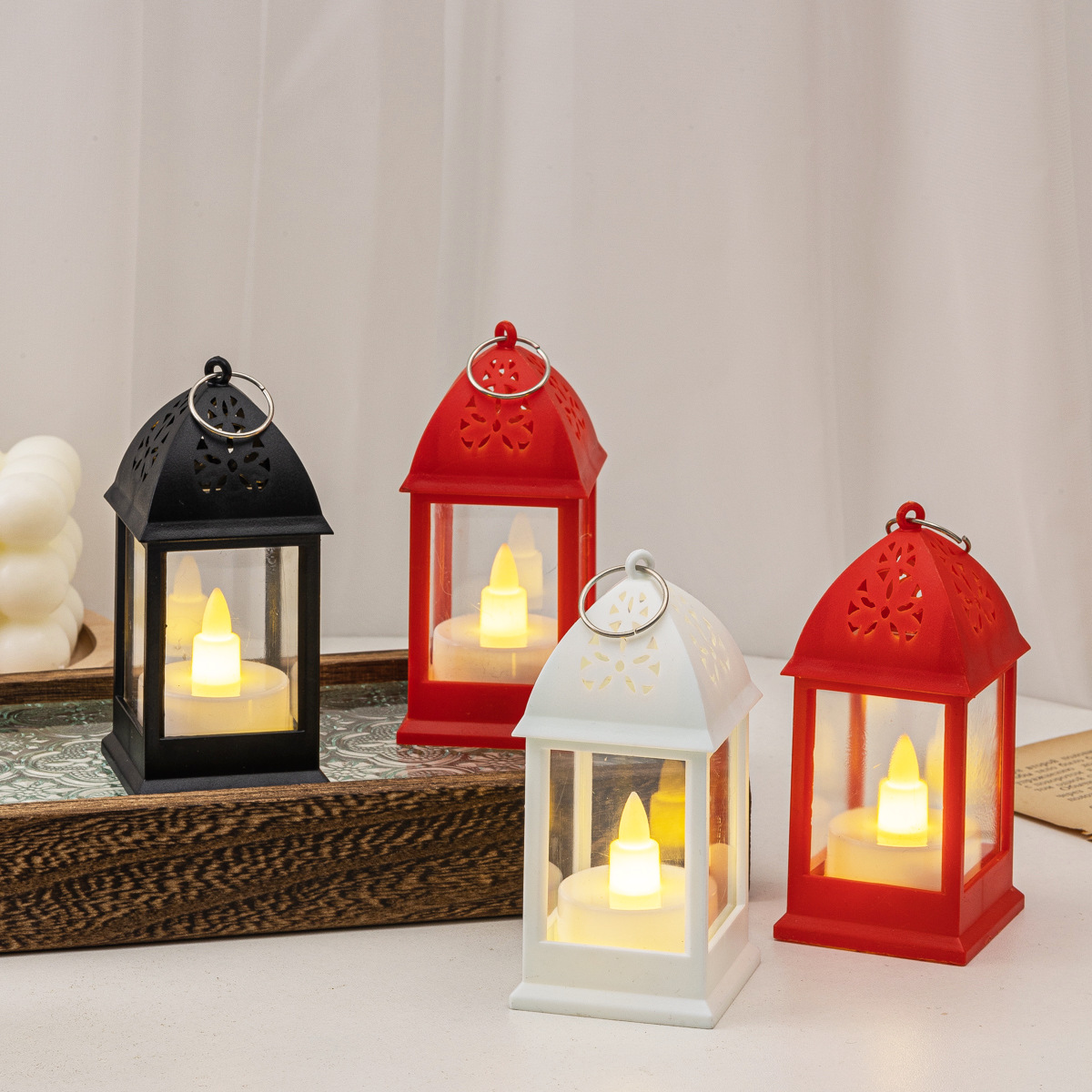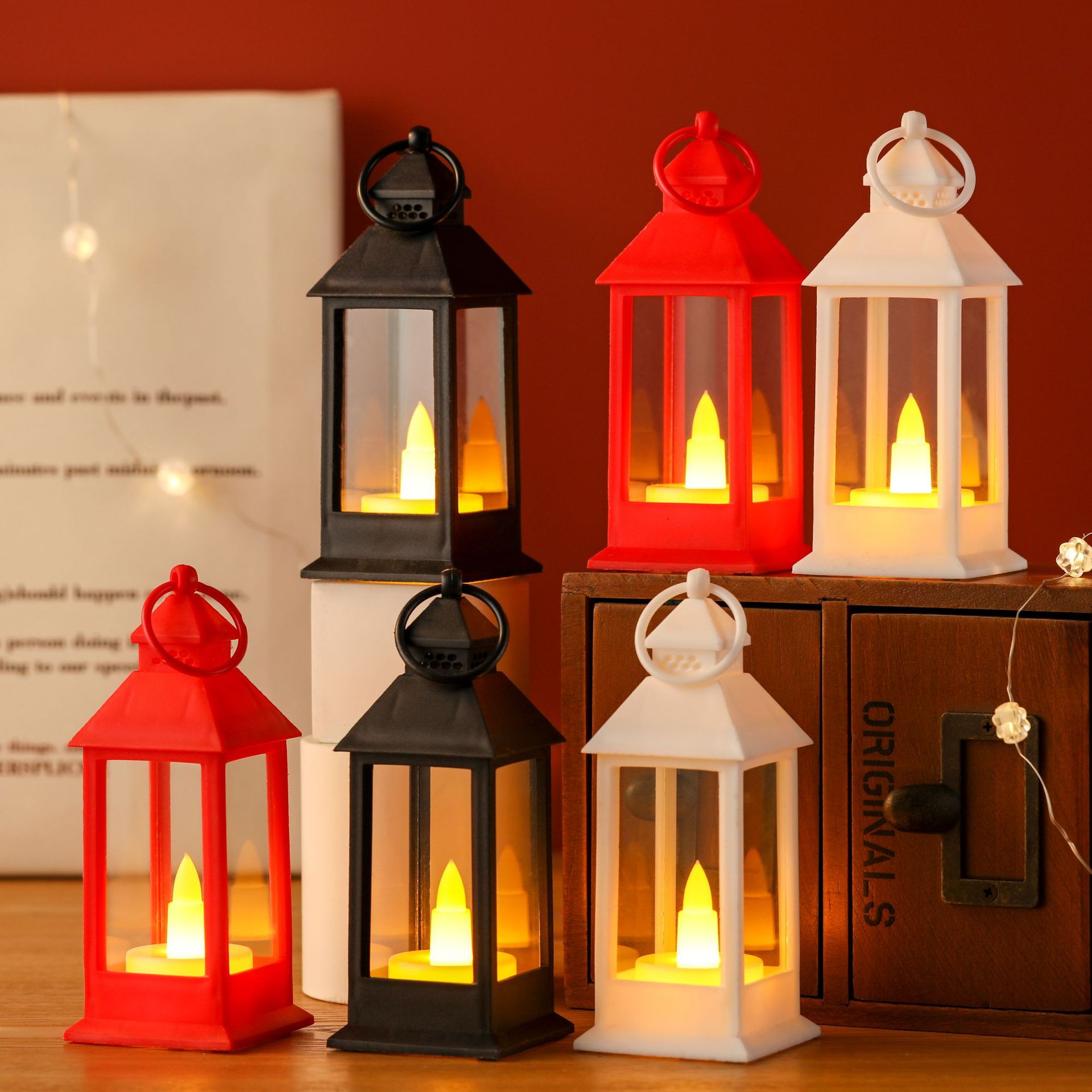 Caja con 24 lámparas de luz cálida, por pieza o por caja, lámparas con luz amarilla. Caja con lámparas en tres colores diferentes. Lámparas en rojo, blanco y negro. Ideal como decoración navideña. Hermoso para esta Navidad.
