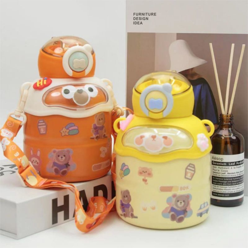 **Botella Infantil Térmica con Diseño de Osito, Popote de Silicona y Asa Ajustable, Capacidad de 500 ml, Ideal para Niños, Fabricada con Materiales Seguros y Libres de BPA, Aislante para Líquidos Fríos y Calientes, Disponible en Colores Variados (Rosa, Amarillo, Verde y Naranja), Diseño Portátil y Divertido, Incluye Tapa Antiderrames, Perfecta para la Escuela, Paseos o Actividades al Aire Libre, Fácil de Limpiar, Resistente y Duradera, Compatible con el Uso Diario, Accesorios Incluidos como Llavero Decorativo y Correa para Transporte Comodo y Seguro.**