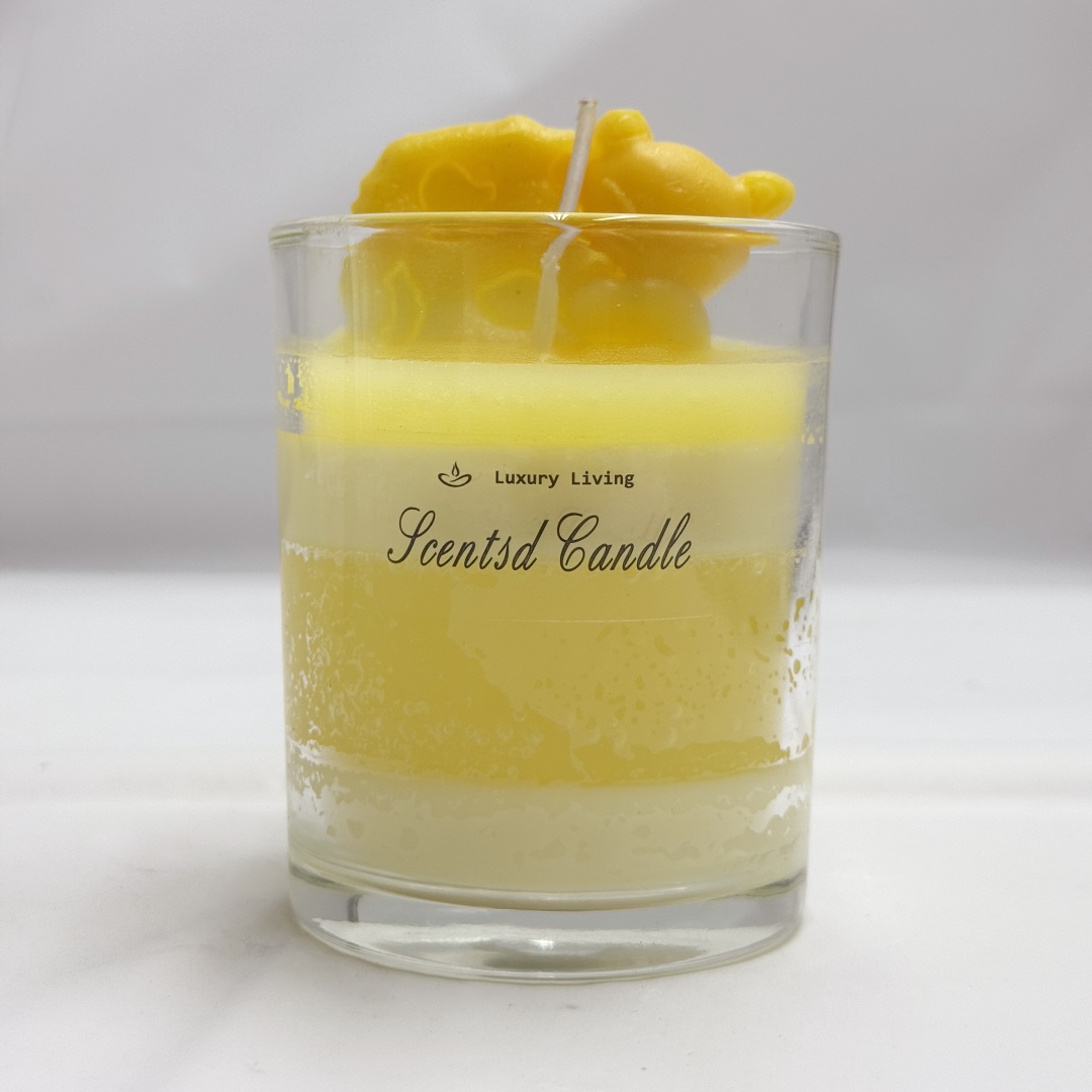 Vela aromática con aroma cítrico, vela aromática de color amarillo radiante con figuritas de osos, lleve una esencia revitalizante a cualquier parte de su hogar con esta vela de aroma exquisito, vela de larga duración